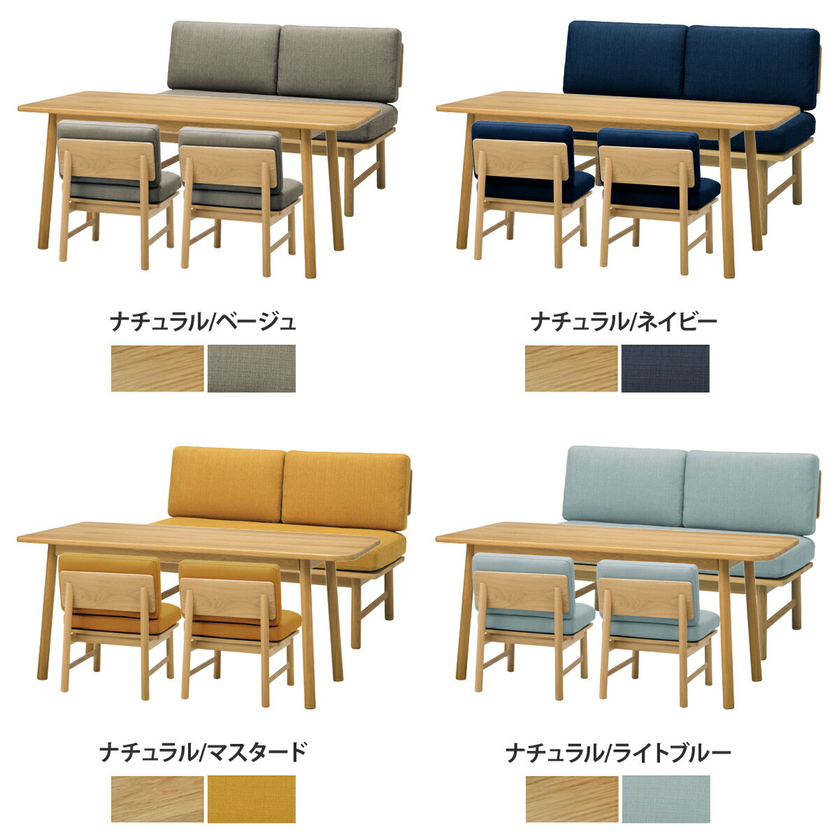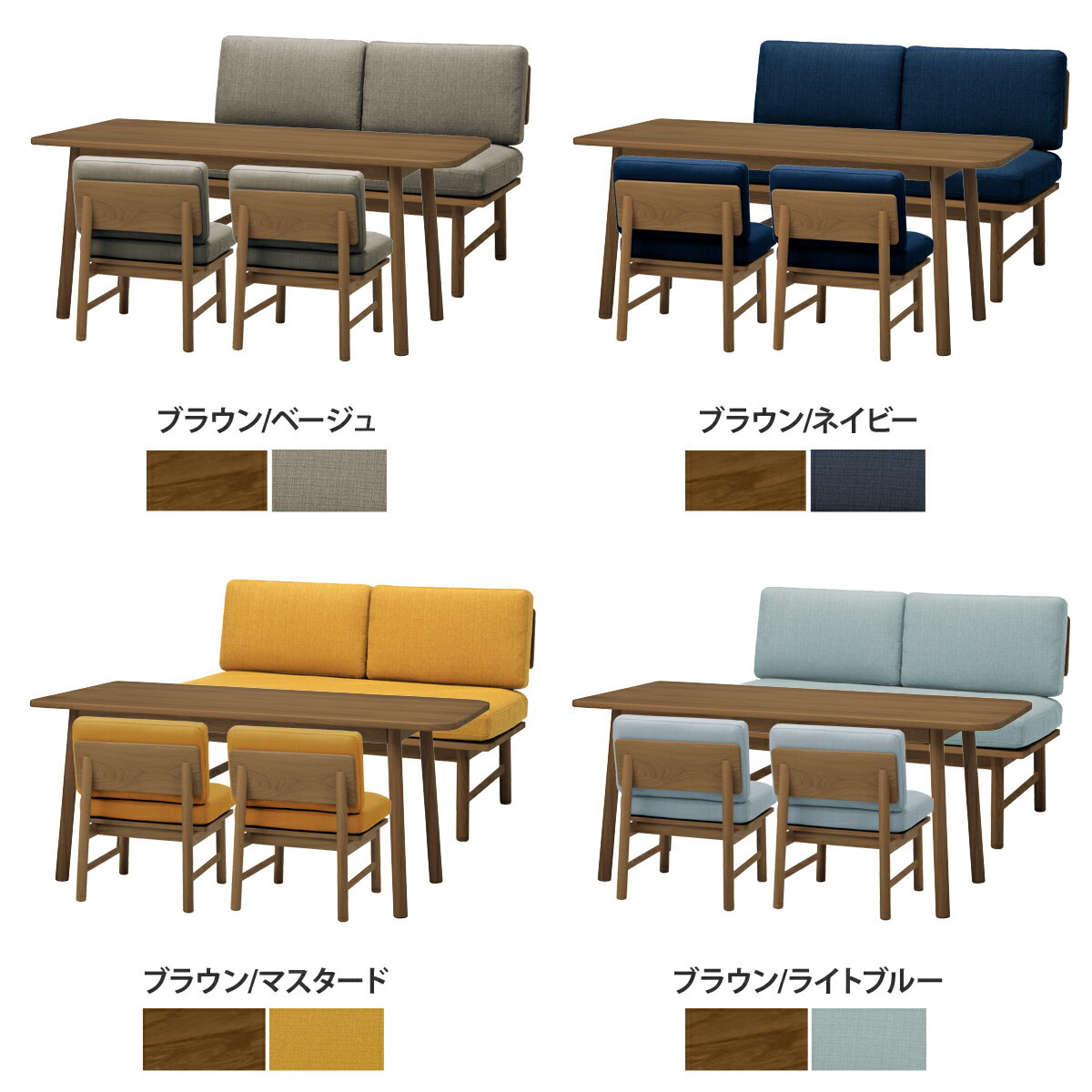 fluff ダイニングセットB(テーブル+ソファ2人掛け+ソファ1人掛け×2) ▼ 画像クリックで拡大します。