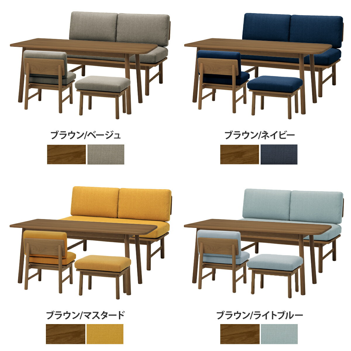 fluff ダイニングセットA(ダイニングテーブル+スツール+1人用ソファ+2人用ソファ) ▼ 画像クリックで拡大します。
