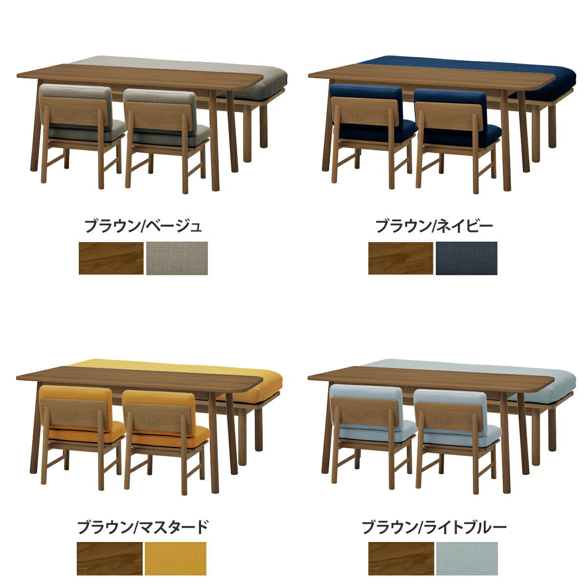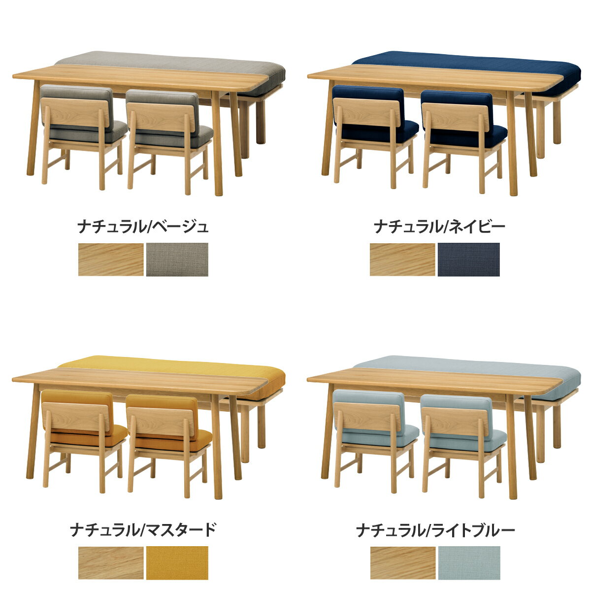 fluff ダイニングセットC(テーブル+ベンチ2人掛け+ソファ1人掛け×2) ▼ 画像クリックで拡大します。