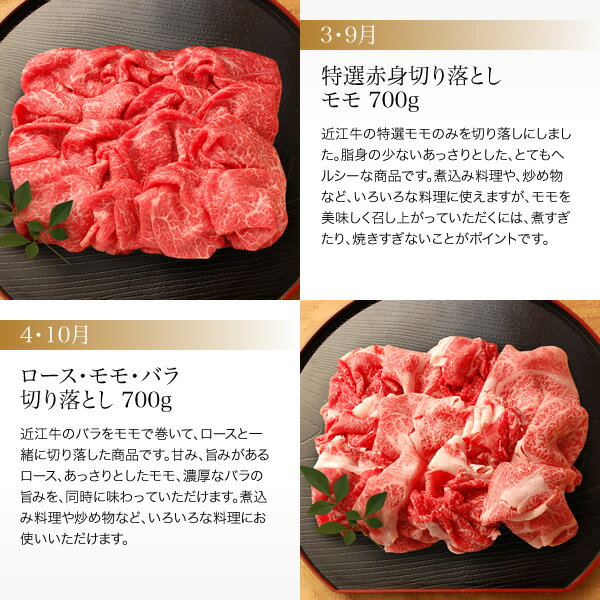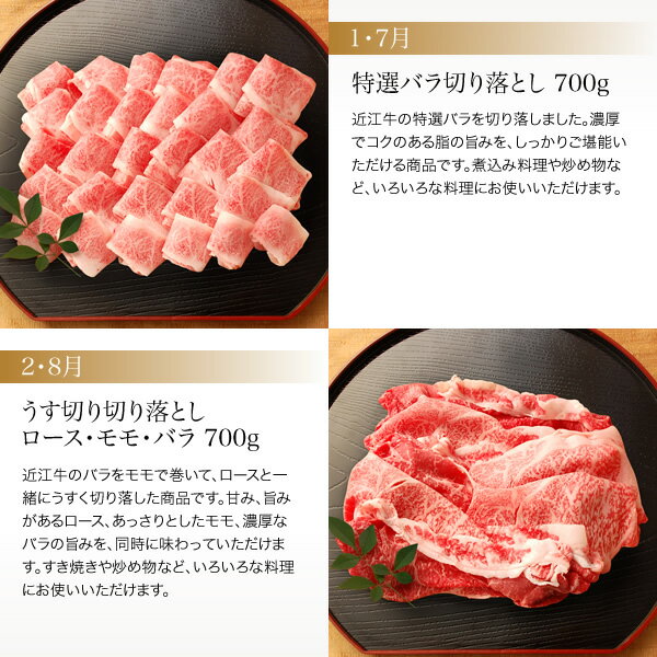お申込み月の翌月から6カ月間、毎月20日発送で、松喜屋近江牛の切落し700gをお届けいたします。