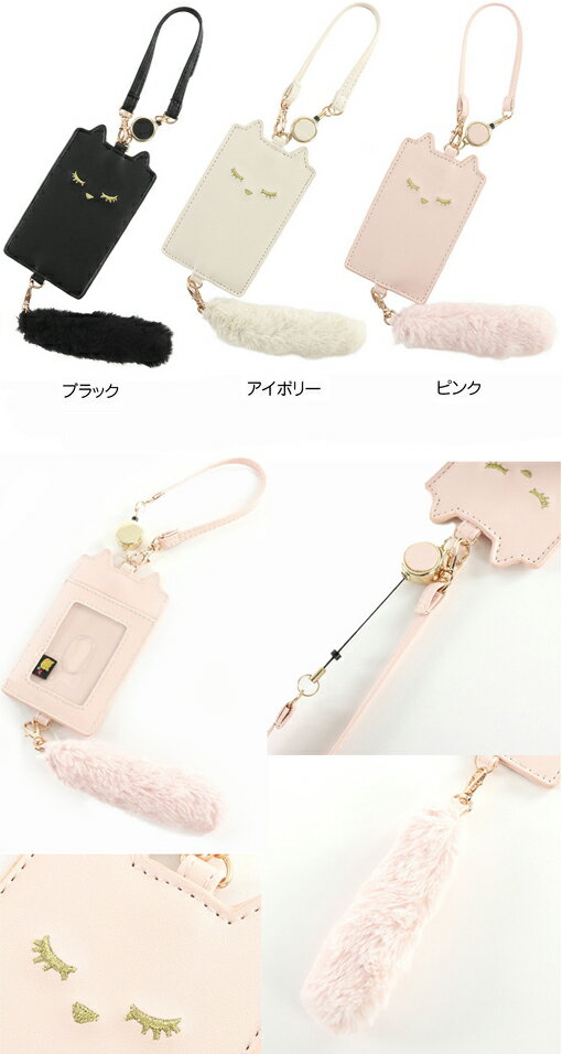 MBB016ネコちゃんしっぽパスケース リール付き定期入れカード入れネコのおすましプーちゃんリール付きおすわりプーちゃんポーチプーちゃんしっぽパスケースネコ耳肉球猫ぷーちゃんネコのプーちゃんリールパスケースプーちゃんしっぽパスケース.