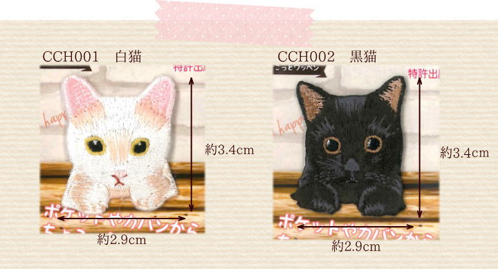 ≪Cats≫猫のちょこっとワッペンポケットからちょこっと覗いたアイロン接着のアップリケです。